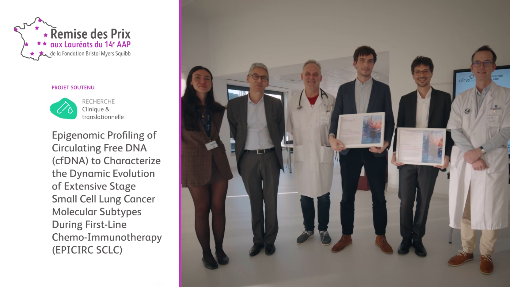 Les cancers bronchiques à petites cellules (CPC) représentent un sous-groupe de cancers pulmonaires de mauvais pronostic. Au stade étendu, le traitement repose sur la chimiothérapie associée à une immunothérapie par anti-PD-L1. L’étude du profil transcriptionnel d’échantillons tumoraux de CPC a permis de définir quatre sous-types moléculaires aux vulnérabilités thérapeutiques particulières. La stabilité de ces sous-types au cours des traitements anti-cancéreux est encore mal connue en raison de l’absence d’échantillons tumoraux prélevés après le diagnostic initial. Le projet EPICIRC SCLC a pour objectif d’étudier, chez des patients atteints de CPC étendu, l’évolution des 4 sous-types moléculaires durant la première ligne de chimio-immunothérapie, grâce à un profilage épigénomique de l’ADN circulant libre sur des échantillons de plasma prélevés au diagnostic, après 3 mois de traitement, et à la progression tumorale. Des analyses épigénomiques, incluant la méthylation de l’ADN circulant (cf-MeDIP), l’étude de modifications post-traductionnelles des histones H3K27/H3K4 par cf-ChIP-seq, et le séquençage du génome entier à faible profondeur (lpWGS), seront employées afin de définir le sous-type moléculaire de CPC. Ce projet permettra une meilleure compréhension des mécanismes de résistance à la chimio-immunothérapie et fournira une description des cibles thérapeutiques potentielles pour la deuxième ligne de traitement.