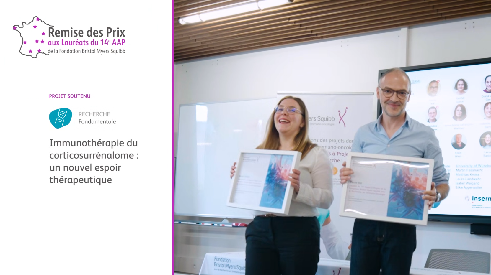 Les corticosurrénalomes (CCS) sont des tumeurs rares et agressives, avec environ 35 % des patients diagnostiqués à un stade métastatique. Les options thérapeutiques sont limitées, avec une médiane de survie inférieure à 15 mois. Le microenvironnement immunitaire (TME) jouant un rôle clé dans la progression tumorale, nous avons entrepris sa caractérisation dans notre modèle murin préclinique de CCS. Nous avons observé que la progression maligne s’accompagne d’un profond remaniement du TME, marqué par une infiltration de macrophages immunosuppresseurs et une altération de l’infiltrat lymphoïde. Parmi les médiateurs de cette immunomodulation, CD276/B7-H3 est apparu comme l’un des points de contrôles immunitaires les plus surexprimés, tant dans les tumeurs primaires que dans les métastases.
